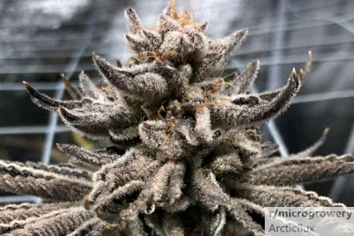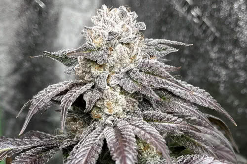Flowering wraps in a brisk 60–65 days, and plants stay medium height with sturdy lateral branching. Temperature drops late flower coax rich purples that contrast brilliantly against its snowy resin. Expect medium‑to‑high yields indoors and bountiful outdoor harvests by early October.